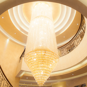 ล็อบบี้โรงแรมคริสตัลหรูหราวางแสงโคมไฟจี้โคมไฟระย้าหรูหราขนาดใหญ่สําหรับเพดานสูงบันไดบ้านโรงแรม